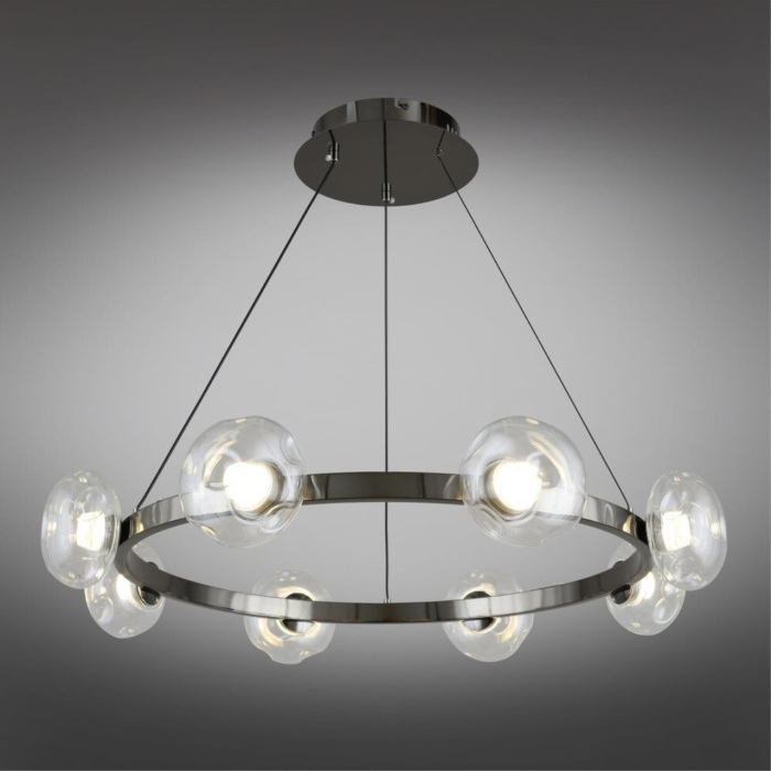 Осветительный прибор выполнен в стиле Модерн. Используются лампы цоколя LED мощностью 56 Вт, в количестве 8 шт. Основной цвет модели APL.072.23.08: Прозрачный.