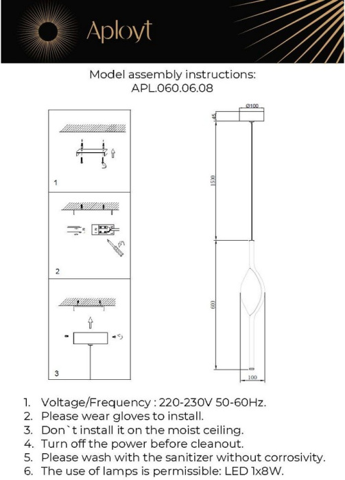 Подвесной светильник Krysia APL.060.06.08 Aployt