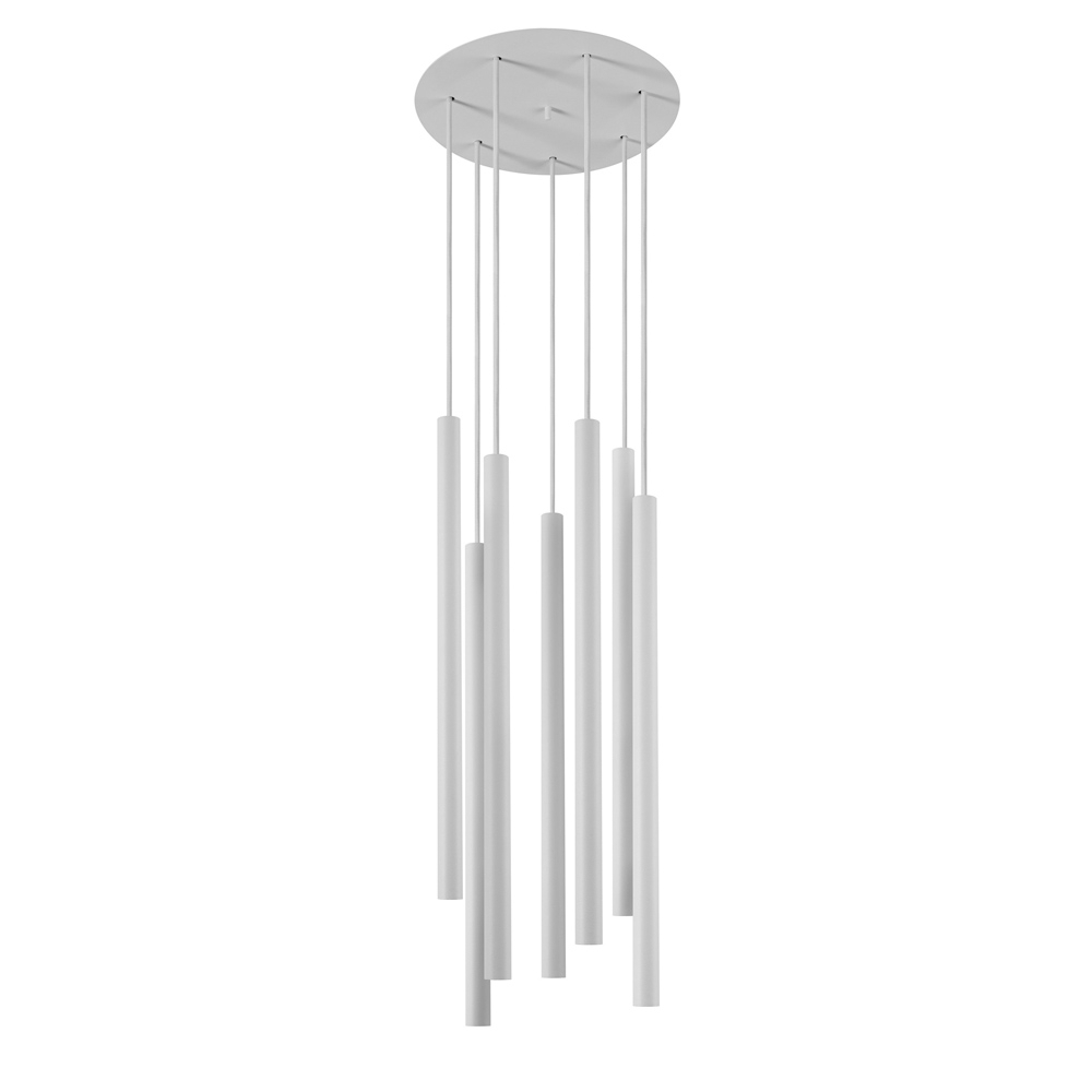 Осветительный прибор создан в стиле Лофт. Задействуются лампы с цоколем G9 мощностью 70 Вт, количеством 7 шт. Цвет модели 8918: Белый.