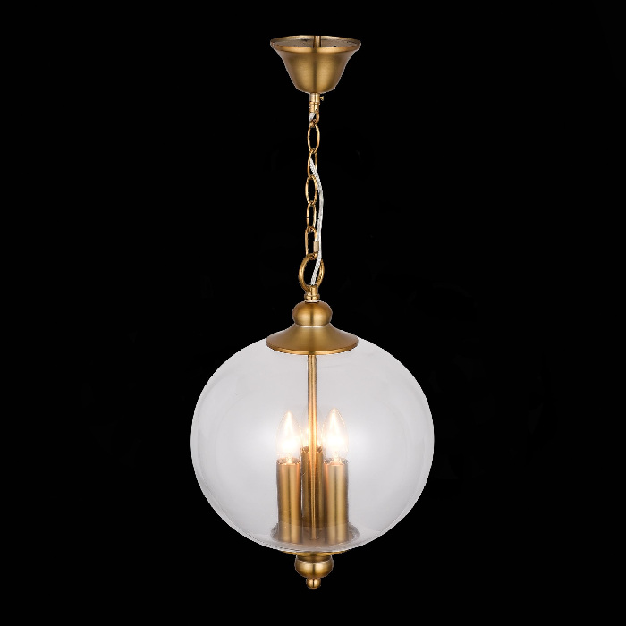 Осветительный прибор создан в стиле Кантри. Задействуются лампочки с цоколем E14 мощностью 180 Вт, в количестве 3 шт. Основной цвет модели SL362.203.03: Золотой,Прозрачный.