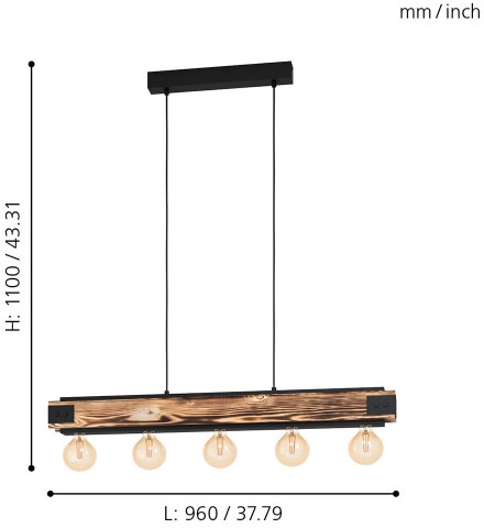 Подвесной светильник 43468 от бренда Eglo из коллекции Layham. Размеры: длина 960 мм, высота 1100 мм, ширина 85 мм. Светильники Eglo 43468 произведены из высококачественных и прочных материалов: Металл,Дерево, плафон - Без плафона.