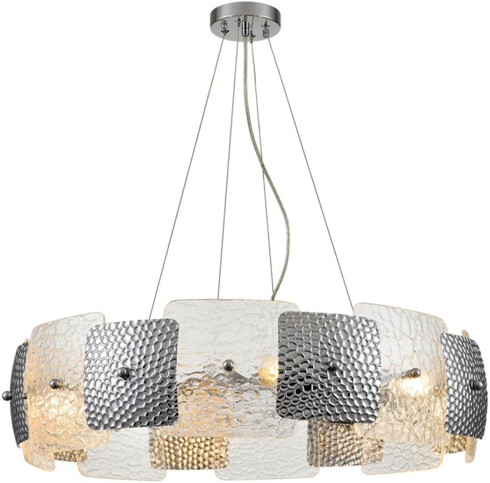 Осветительный прибор выполнен в стиле Модерн. Подходят лампочки с цоколем E14 мощностью 320 Вт, в количестве 8 шт. Основной цвет модели 6588/8: Прозрачный,Хром.
