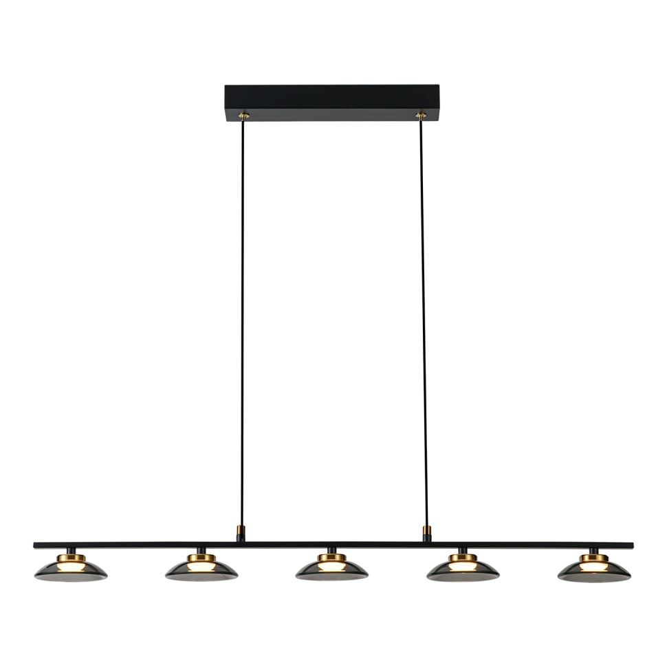 Осветительный прибор сделан в стиле Модерн. Применяются лампочки цоколя LED мощностью 19 Вт, в количестве 5 ед.