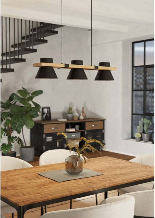Осветительный прибор разработан в стиле Модерн. Применяются лампочки с цоколем E27 мощностью 45 Вт, в количестве 3 шт. Основной цвет модели 43956: Чёрный.