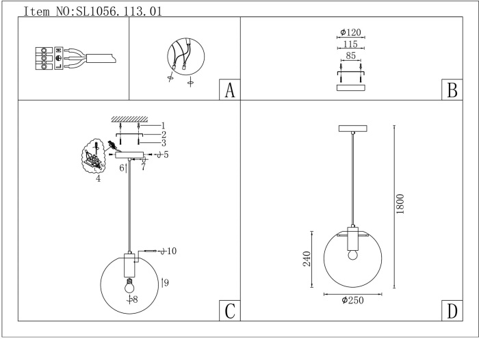 Подвесной светильник SL1056.113.01 – это продукция бренда ST Luce из коллекции Noor. Габаритные параметры: высота 1600 мм, диаметр 250 мм. Светильники ST Luce SL1056.113.01 выполнены из высококачественных и прочных материалов: металл, плафон - стекло.