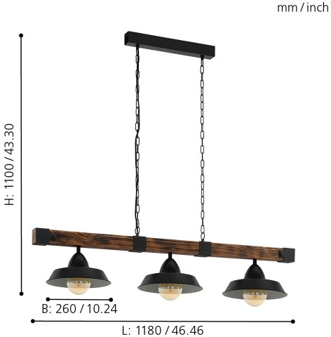 Подвесной светильник 49685 от бренда Eglo, относящаяся к коллекции Oldbury. Габариты: длина 1180 мм, высота 1100 мм, ширина 260 мм. Светильники Eglo 49685 изготовлены с использованием высококачественных и прочных материалов, таких как: Металл,Дерево, плафон - Металл.