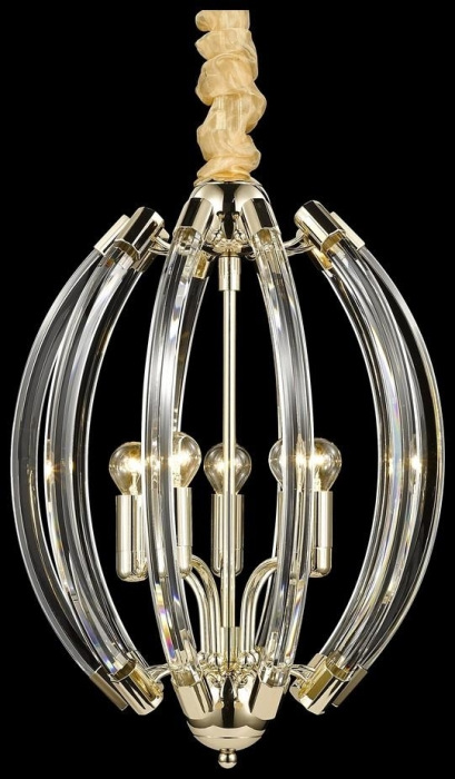 Осветительный прибор создан в стиле Арт-Деко. Используются лампочки цоколя E14 мощностью 200 Вт, количеством 5 шт.
