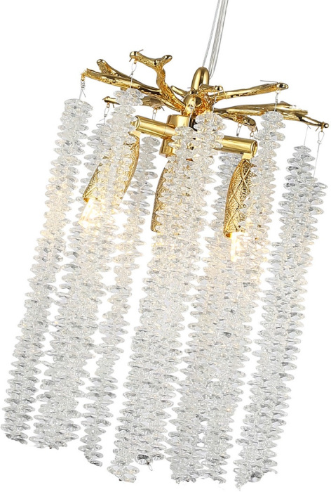 Осветительный прибор разработан в стиле Арт-Деко. Задействуются лампочки цоколя G9 мощностью 21 Вт, количеством 3 шт. Цвет модели 07871-20D,33: Прозрачный.