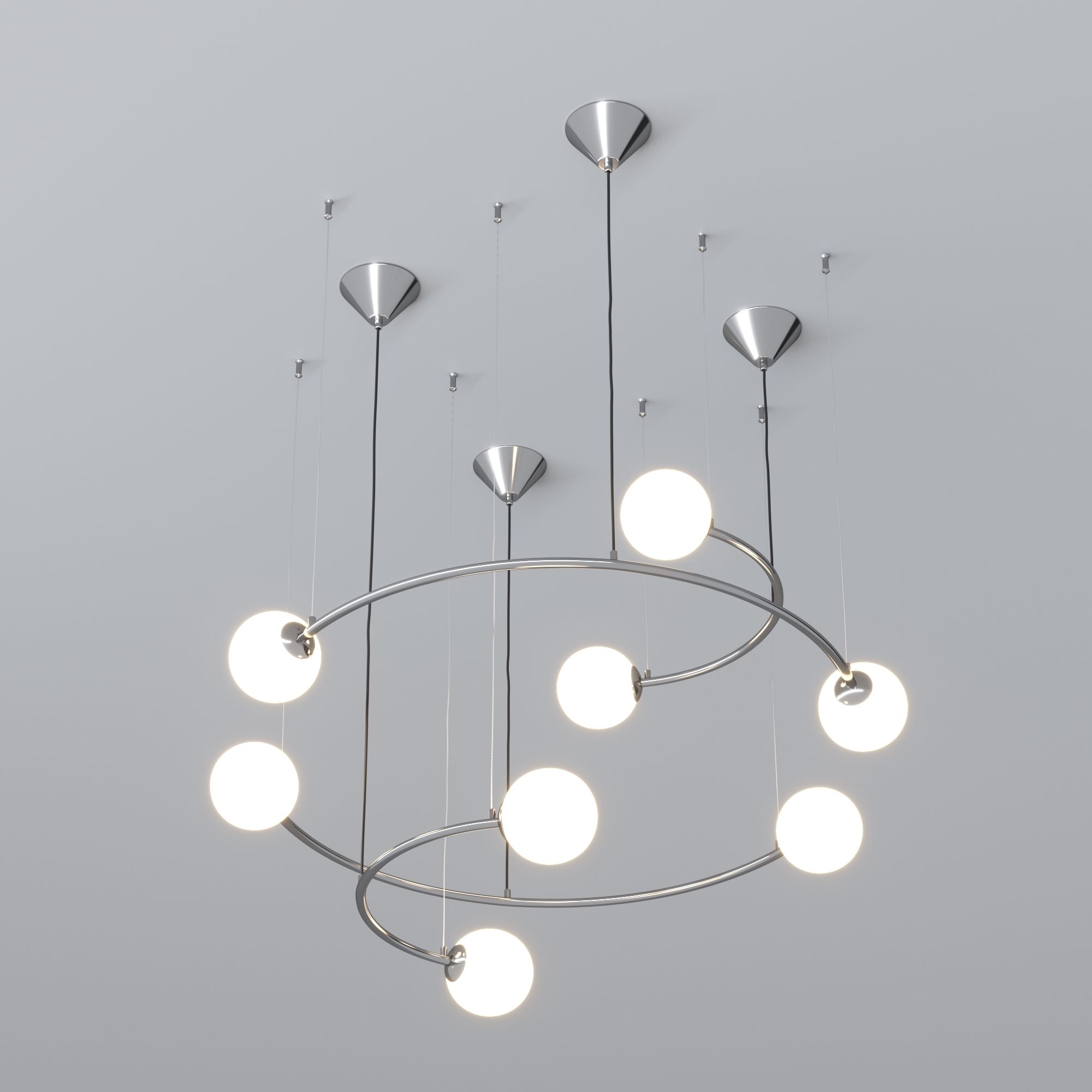 Задействуются лампы с цоколем G9 мощностью 5 Вт, количеством 8 шт. Цвет модели a057670: Хром.
