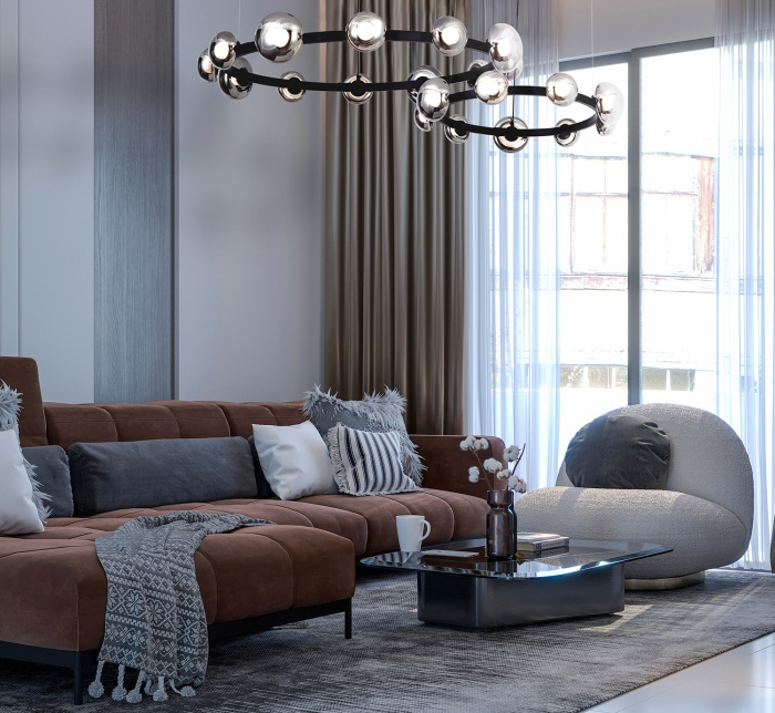 Осветительный прибор создан в стиле Модерн. Подходят лампы с цоколем LED мощностью 60 Вт, количеством 12 шт. Цвет модели 4517-12P: Серый,Чёрный.
