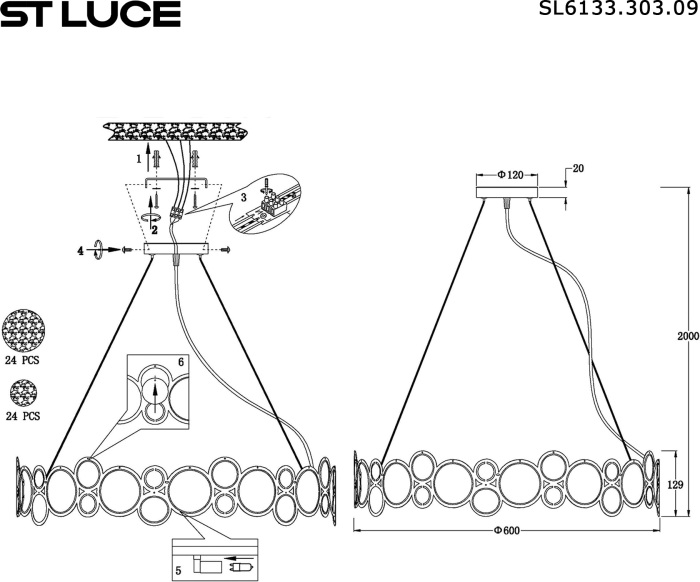Подвесной светильник SL6133.303.09 – это продукция бренда ST Luce, относящаяся к коллекции Swatch. Габариты: диаметр 600 мм. Светильники ST Luce SL6133.303.09 произведены из высококачественных и прочных материалов: металл, плафон - стекло.