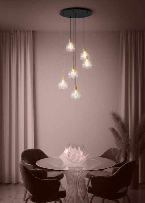 Осветительный прибор сделан в стиле Современный. Задействуются лампочки цоколя LED мощностью 32.4 Вт, в количестве 6 ед. Цвет модели 390279: Латунь,Прозрачный,Чёрный.