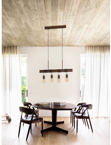 Осветительный прибор сделан в стиле Лофт. Задействуются лампы с цоколем E27 мощностью 240 Вт, в количестве 4 ед. Цвет модели 43523: Коричневый.