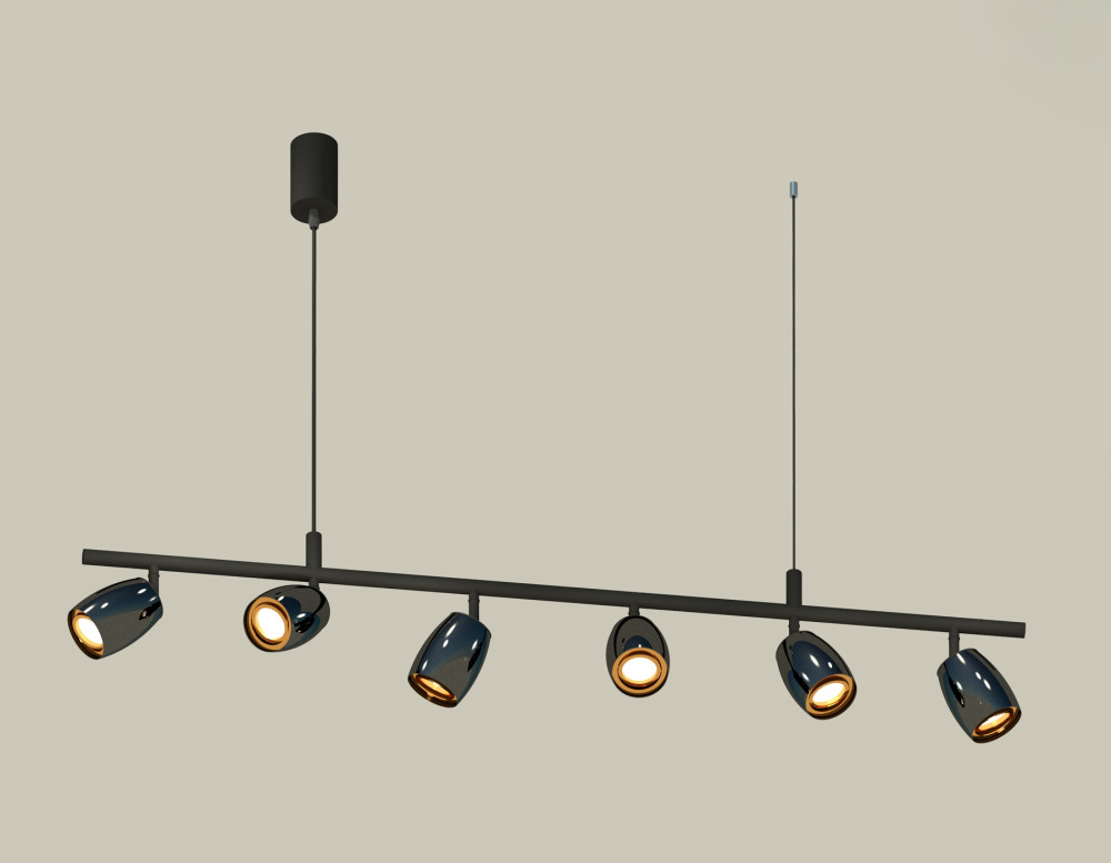 Осветительный прибор создан в стиле Хай-тек. Используются лампочки с цоколем GU5.3 мощностью 60 Вт, в количестве 6 шт. Основной цвет модели XB9006530: Чёрный.