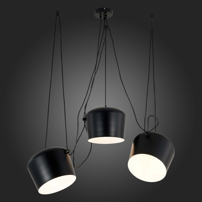 Осветительный прибор создан в стиле Лофт. Подходят лампочки с цоколем E27 мощностью 120 Вт, в количестве 3 шт. Основной цвет модели SLE120643-03: Чёрный.