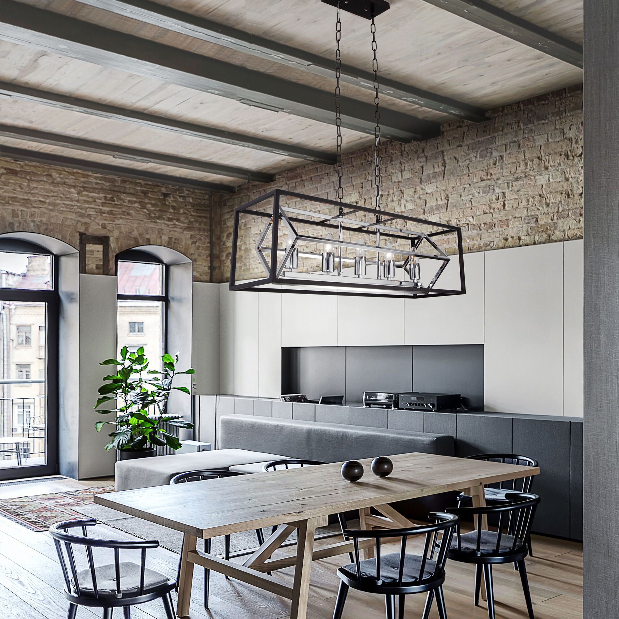 Осветительный прибор создан в стиле Дизайнерский. Используются лампы с цоколем E27 мощностью 60 Вт, в количестве 5 ед. Цвет модели a052335: Чёрный.