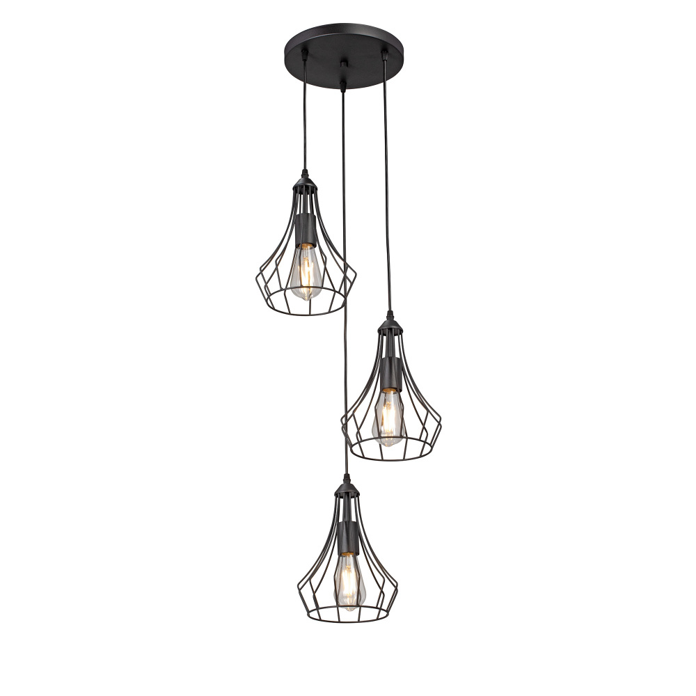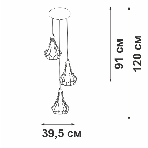 Осветительный прибор сделан в стиле Лофт. Задействуются лампы цоколя E27 мощностью 120 Вт, количеством 3 ед.