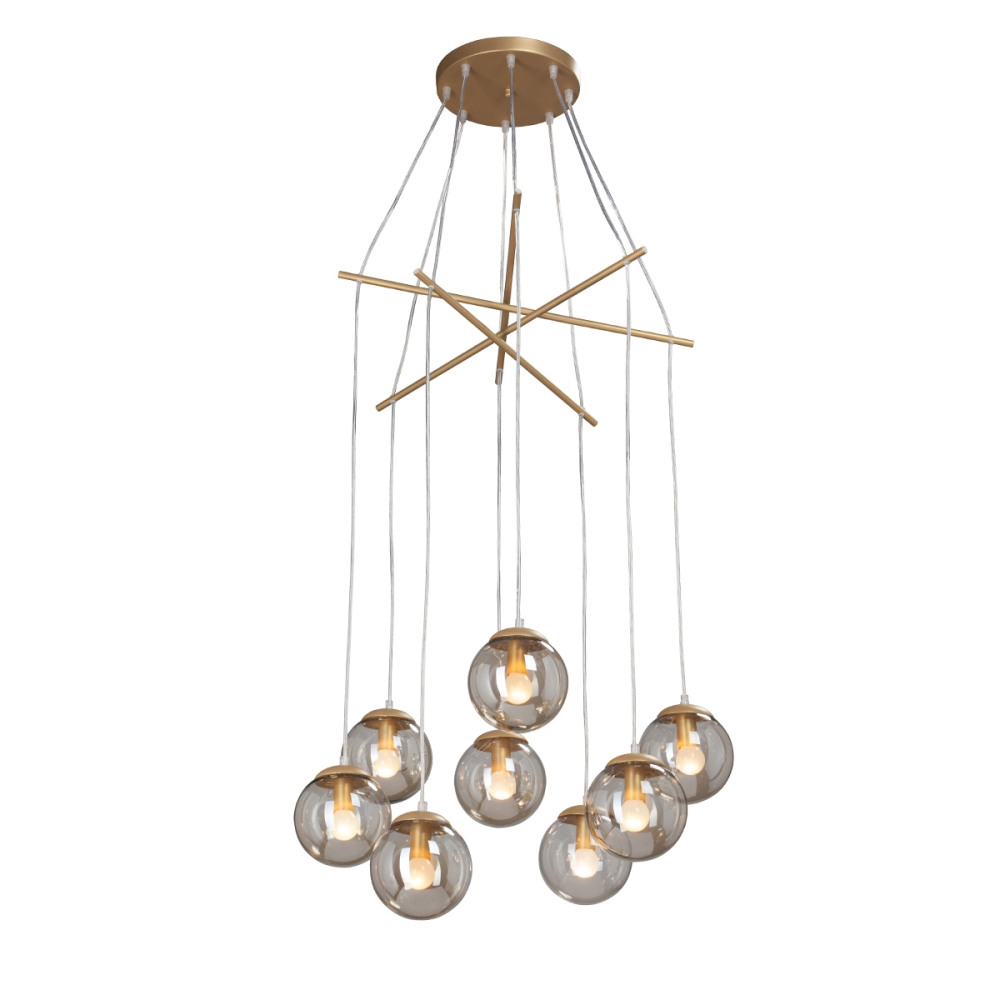 Осветительный прибор выполнен в стиле Арт-Деко. Используются лампы цоколя E14 мощностью 320 Вт, в количестве 8 шт. Основной цвет модели V4828-8/8S: Золотой,Прозрачный.