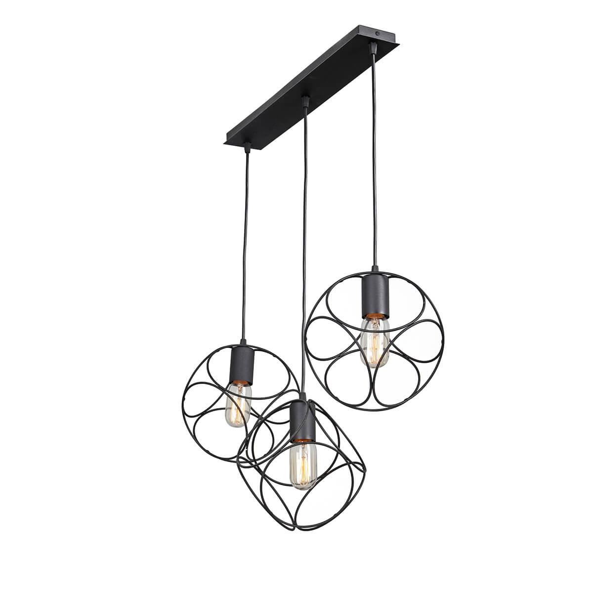 Осветительный прибор разработан в стиле Лофт. Подходят лампочки цоколя E27 мощностью 120 Вт, в количестве 3 ед. Цвет модели V4970-1/3S: Чёрный.