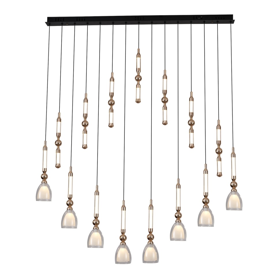 Осветительный прибор выполнен в стиле Модерн. Задействуются лампы цоколя LED мощностью 45 Вт, в количестве 15 шт.
