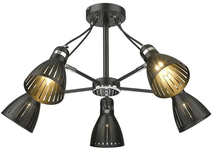 Осветительный прибор создан в стиле Лофт. Применяются лампы цоколя E14 мощностью 200 Вт, в количестве 5 шт. Основной цвет модели 219-023-05: Хром,Чёрный.