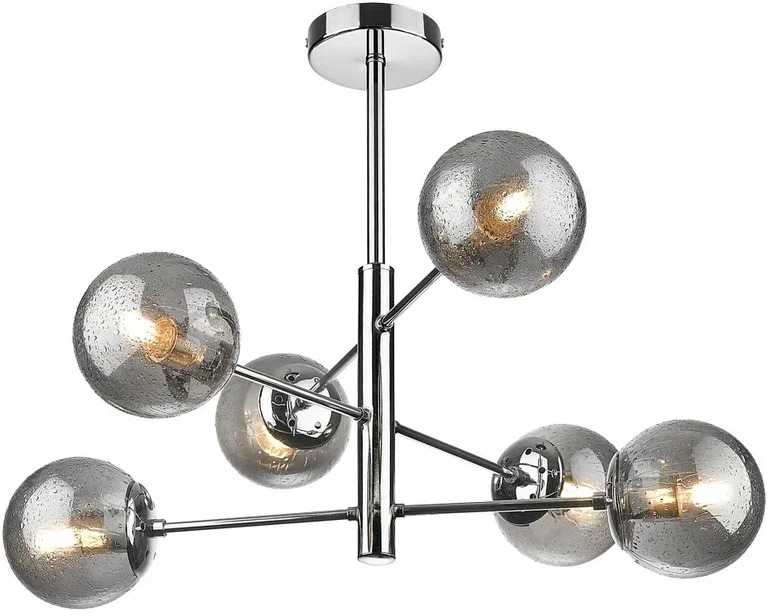 Осветительный прибор выполнен в стиле Модерн. Задействуются лампочки цоколя E27 мощностью 240 Вт, количеством 6 шт. Цвет модели 245-103-06: Прозрачный,Серый.