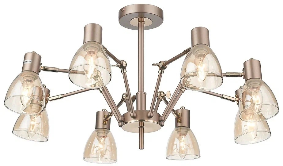 Осветительный прибор выполнен в стиле Модерн. Подходят лампочки цоколя E14 мощностью 320 Вт, количеством 8 шт. Цвет модели 246-403-08: Прозрачный.