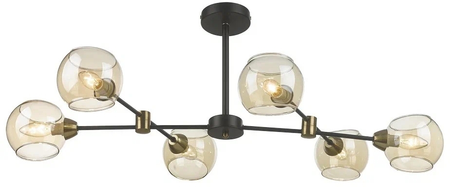 Осветительный прибор создан в стиле Модерн. Применяются лампочки цоколя E14 мощностью 240 Вт, в количестве 6 ед. Цвет модели 249-023-06: Янтарный.