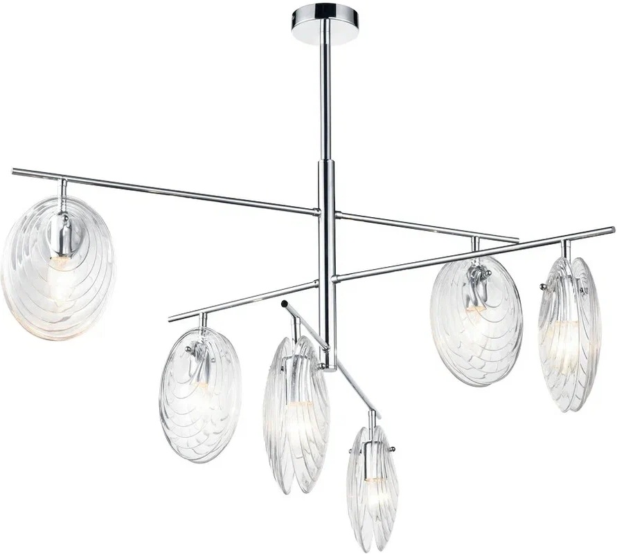 Осветительный прибор сделан в стиле Модерн. Подходят лампочки с цоколем E14 мощностью 360 Вт, количеством 6 ед. Основной цвет модели 364-103-06: Прозрачный.
