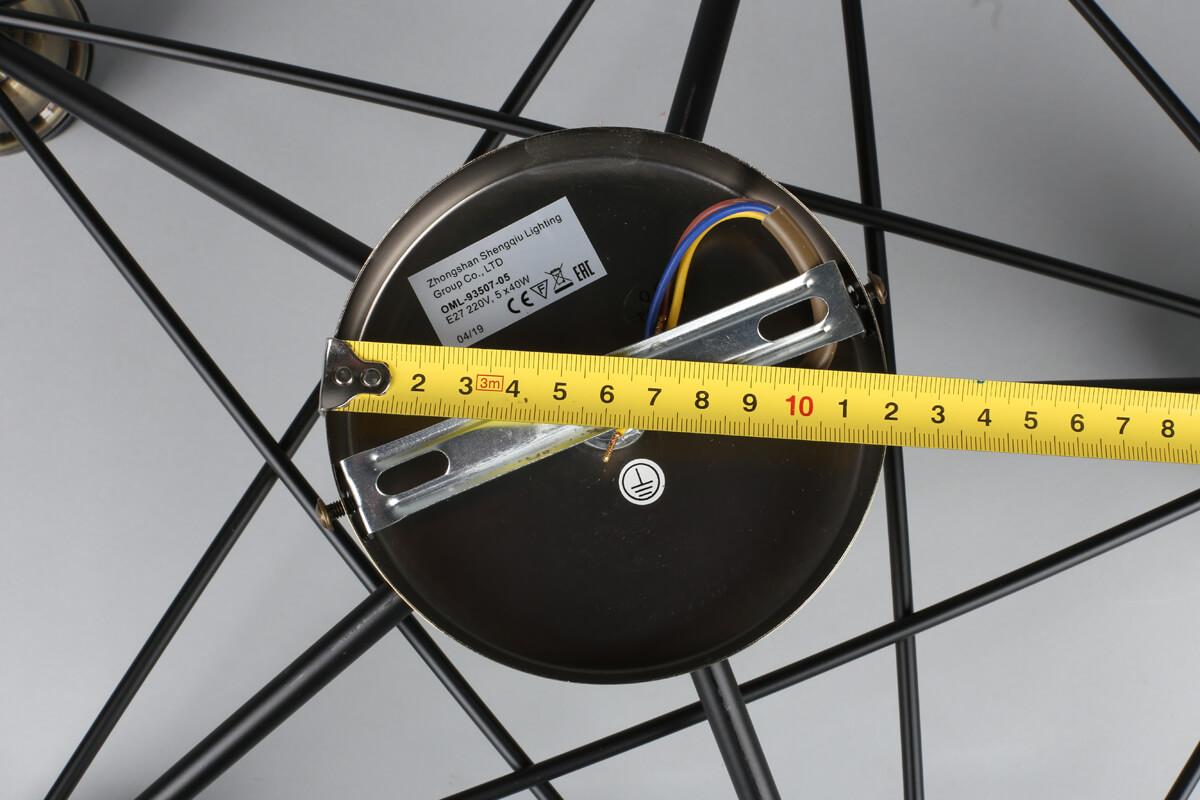 Осветительный прибор выполнен в стиле Современный. Подходят лампы с цоколем E27 мощностью 200 Вт, количеством 5 шт. Цвет модели OML-93507-05: Чёрный.