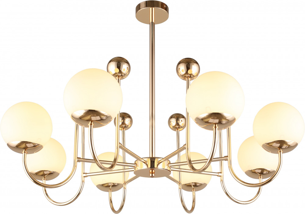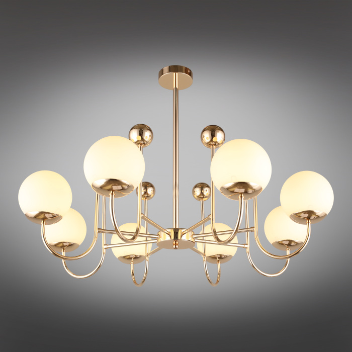Осветительный прибор сделан в стиле Модерн. Используются лампочки с цоколем E14, количеством 8 ед. Основной цвет модели OML-67007-08: Золотой.