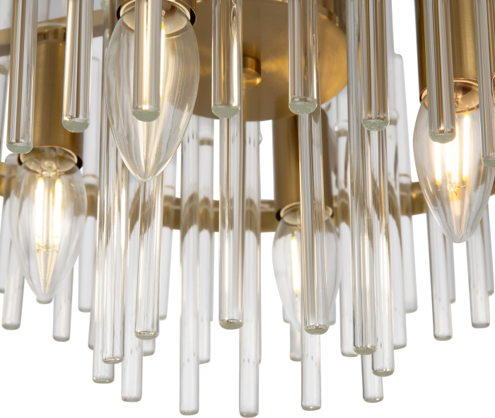 Осветительный прибор разработан в стиле Арт-Деко. Применяются лампы с цоколем E14 мощностью 360 Вт, количеством 6 шт. Цвет модели FR5216PL-06BS: Прозрачный.