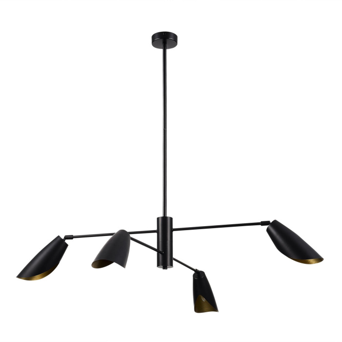 Осветительный прибор разработан в стиле Модерн. Применяются лампочки с цоколем E14 мощностью 240 Вт, в количестве 4 шт. Основной цвет модели SLE1254-403-04: Чёрный.