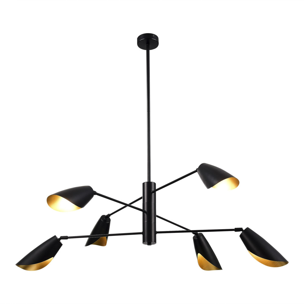 Осветительный прибор создан в стиле Модерн. Используются лампочки с цоколем E14 мощностью 360 Вт, в количестве 6 шт. Основной цвет модели SLE1254-403-06: Чёрный.