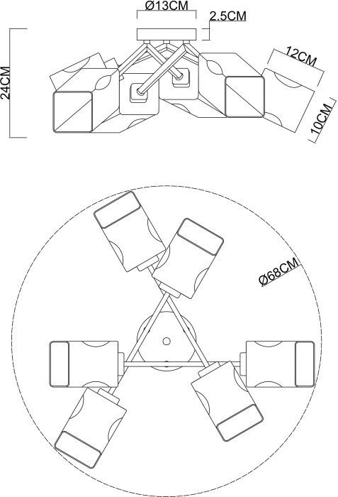 Осветительный прибор сделан в стиле Модерн. Задействуются лампочки цоколя E14 мощностью 360 Вт, в количестве 6 ед. Цвет модели A2318PL-6SG: Янтарный.