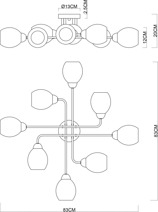 Осветительный прибор выполнен в стиле Модерн. Используются лампы цоколя E27 мощностью 480 Вт, в количестве 8 шт. Основной цвет модели A8141PL-8BK: Белый.
