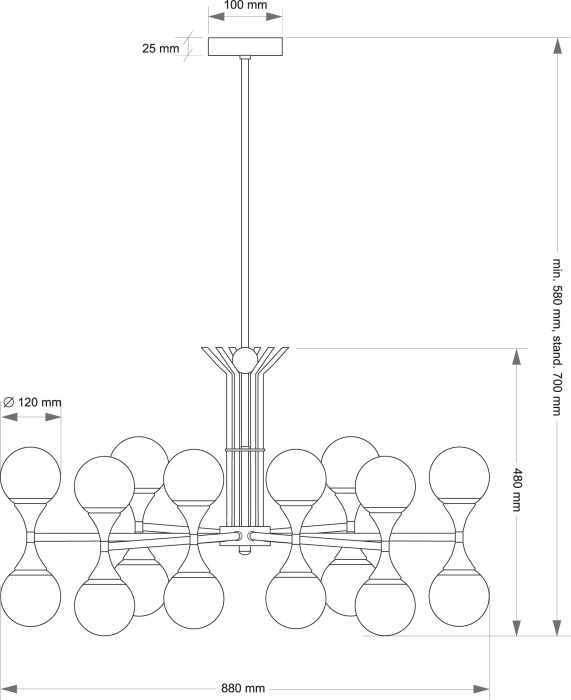 Осветительный прибор разработан в стиле Модерн. Применяются лампы цоколя G9 мощностью 80 Вт, в количестве 16 шт. Основной цвет модели BAR-ZW-8(ZM): Белый.