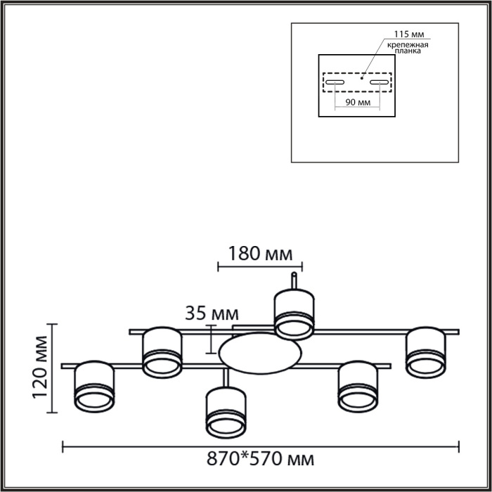 Осветительный прибор выполнен в стиле Минимализм. Используются лампочки с цоколем GX53 мощностью 42 Вт, в количестве 6 шт.