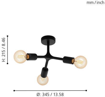 Осветительный прибор разработан в стиле Современный. Подходят лампочки с цоколем E27 мощностью 180 Вт, в количестве 3 шт. Основной цвет модели 98317: Чёрный.