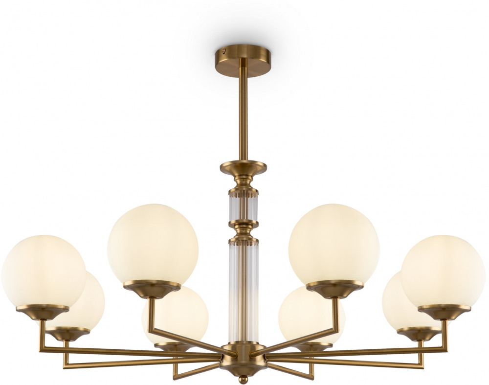Осветительный прибор сделан в стиле Модерн. Используются лампы с цоколем E27 мощностью 480 Вт, в количестве 8 ед. Цвет модели FR5185PL-08BS: Латунь.