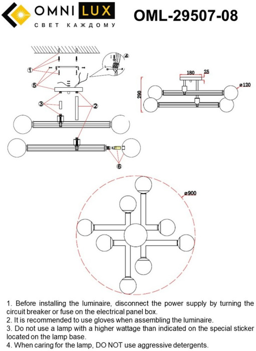 OML-29507-08 изготавливается брендом Omnilux из коллекции Bucine. Габаритные размеры: высота 290 мм, диаметр 900 мм. Люстры Omnilux OML-29507-08 произведены из высококачественных и прочных материалов: Металл,Стекло, плафон - стекло.