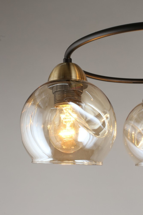 Осветительный прибор разработан в стиле Лофт. Используются лампочки цоколя E27 мощностью 240 Вт, количеством 6 шт. Цвет модели OML-95007-06: Янтарный.