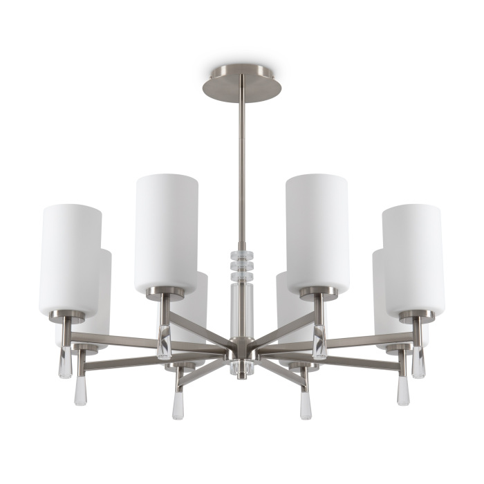 Осветительный прибор выполнен в стиле Модерн. Используются лампы цоколя E14 мощностью 320 Вт, в количестве 8 шт.