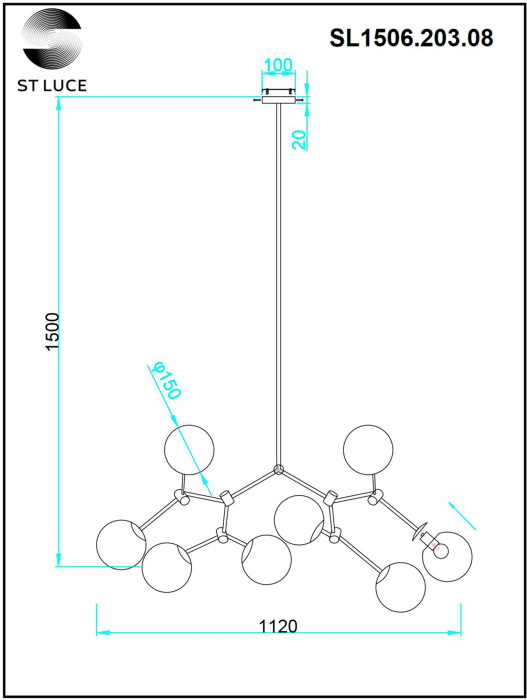 SL1506.203.08 изготавливается брендом ST Luce, относящаяся к коллекции Chieti. Размеры: высота 1500 мм, ширина 1120 мм, диаметр 1120 мм. Люстры ST Luce SL1506.203.08 произведены из высококачественных и прочных материалов: металл, плафон - стекло.