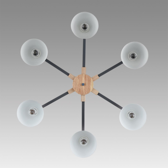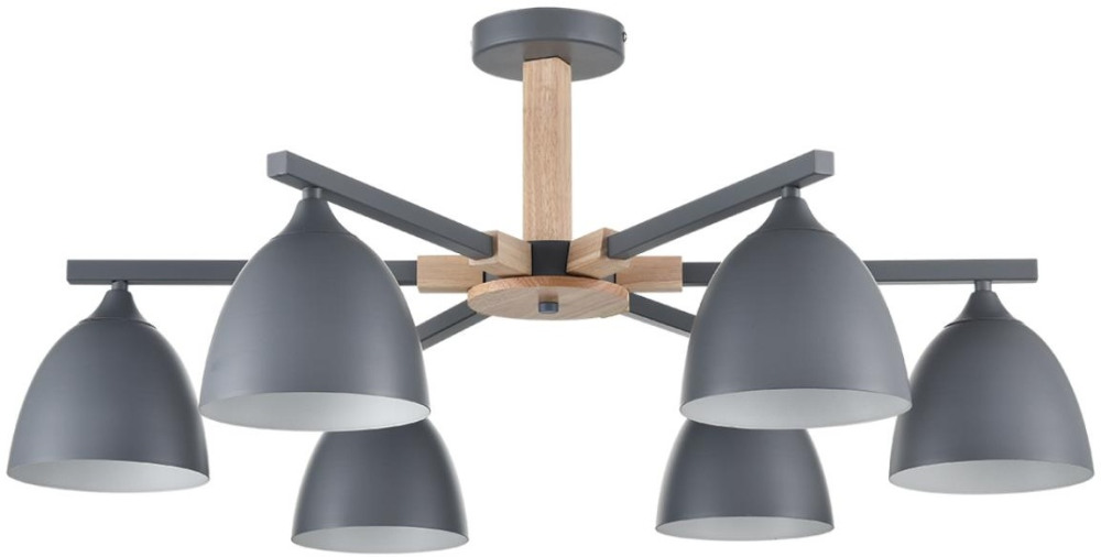 Осветительный прибор выполнен в стиле Джапанди. Применяются лампочки с цоколем E27 мощностью 360 Вт, в количестве 6 шт. Основной цвет модели 8096/6C: Серый.