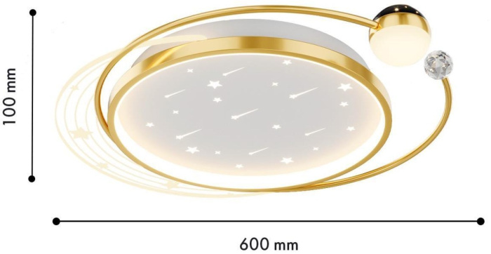 Осветительный прибор сделан в стиле Модерн. Применяются лампы цоколя LED мощностью 102 Вт, количеством 1 ед. Основной цвет модели 4743-5C: Белый,Золотой.