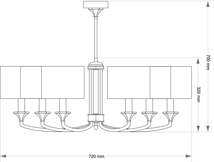 Осветительный прибор разработан в стиле Арт-Деко. Задействуются лампы с цоколем E14 мощностью 240 Вт, количеством 6 шт. Цвет модели DEC-ZW-6(P/A): Серый.