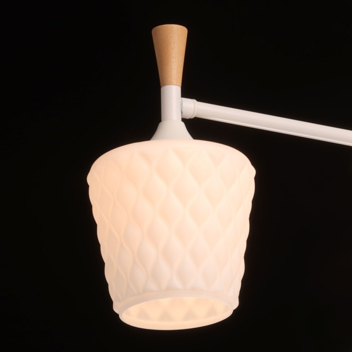Потолочная люстра Дэла 635015003 DeMarkt белая, на штанге, рожковая, деревянная
