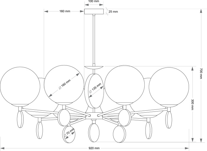 Осветительный прибор создан в стиле Модерн. Используются лампочки цоколя E27 мощностью 480 Вт, в количестве 8 ед. Цвет модели DIM-ZW-8(N): Белый.