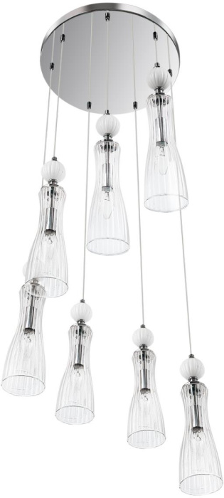 Осветительный прибор создан в стиле Модерн. Применяются лампы с цоколем E14 мощностью 280 Вт, в количестве 7 ед. Цвет модели 8268/7A: Прозрачный.